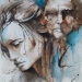 Portret van een jonge vrouw in Acryl, chinese inkt en goudpoeder